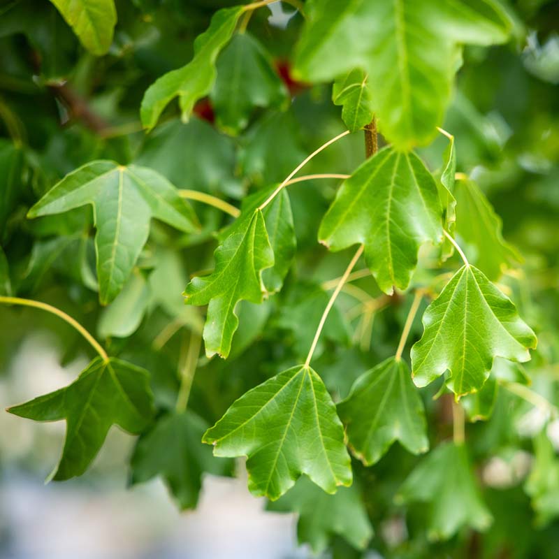 Trident Maple is a small to mid-sized ornamental tree with three-lobed leaves and smooth, exfoliating bark. It offers soft green foliage in summer and transitions to yellow-orange or red in fall.